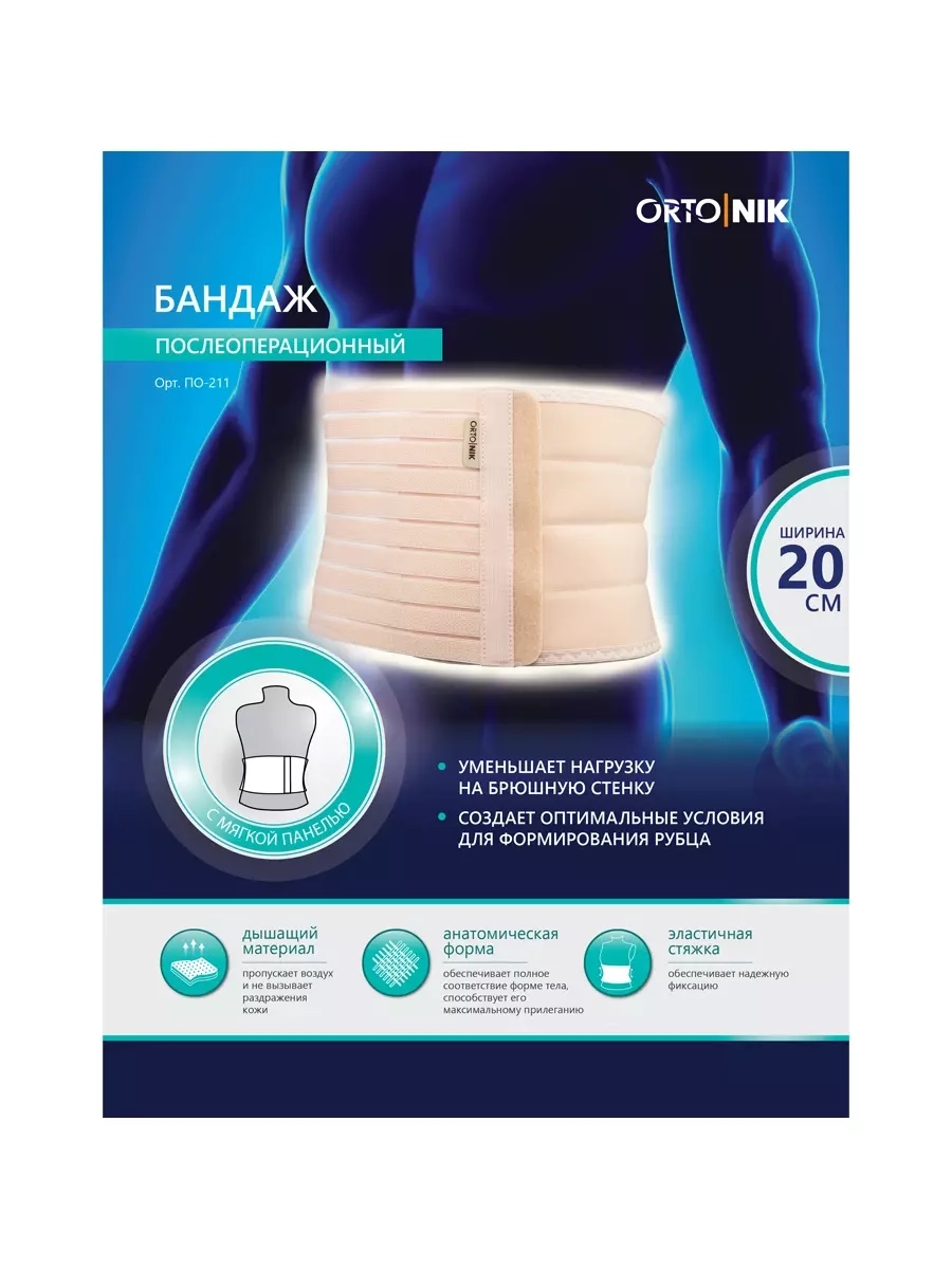 Бандаж послеоперационный с мягкой панелью шириной 20 см, артикул Орт.ПО-211 (1 панель)