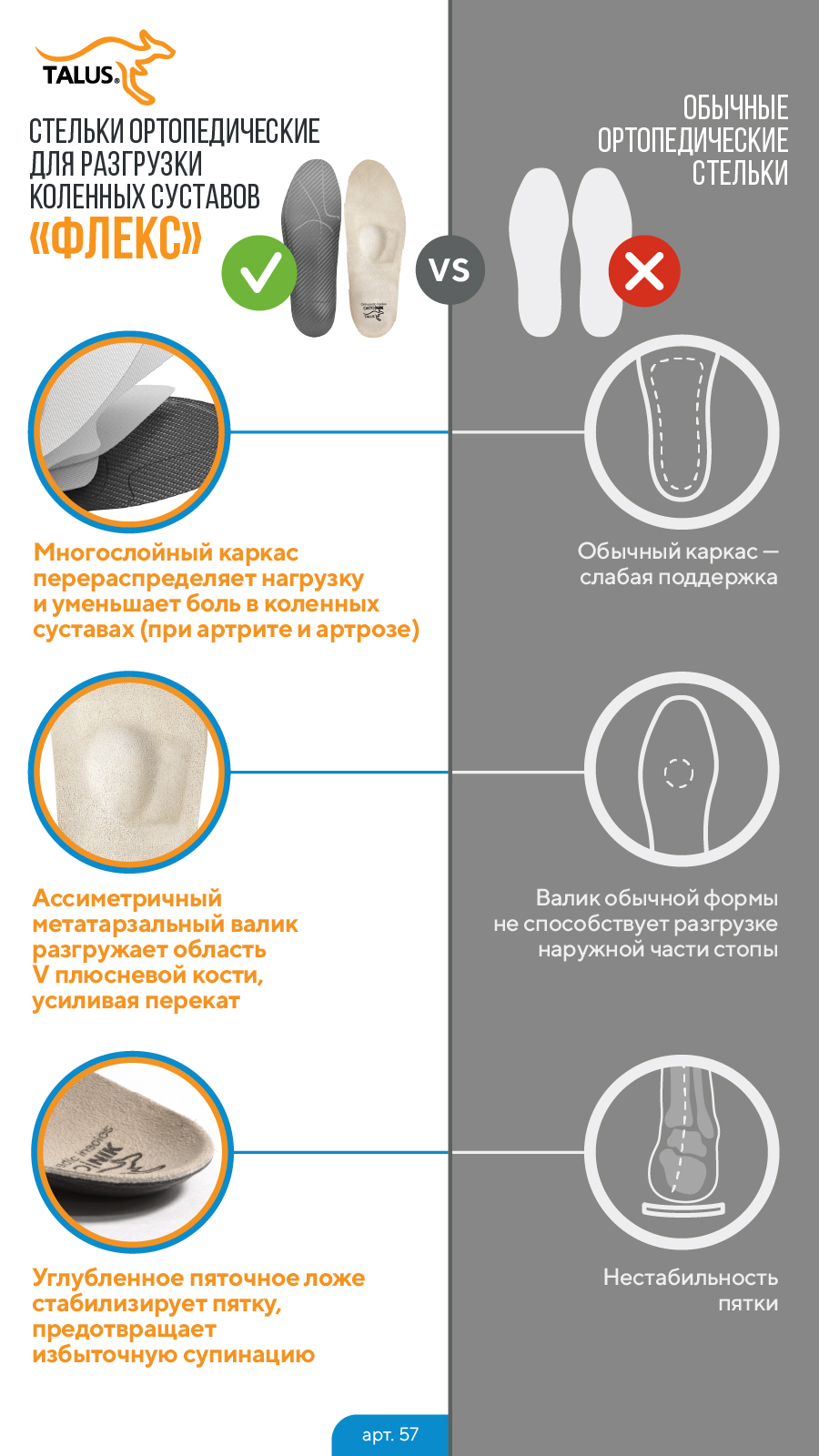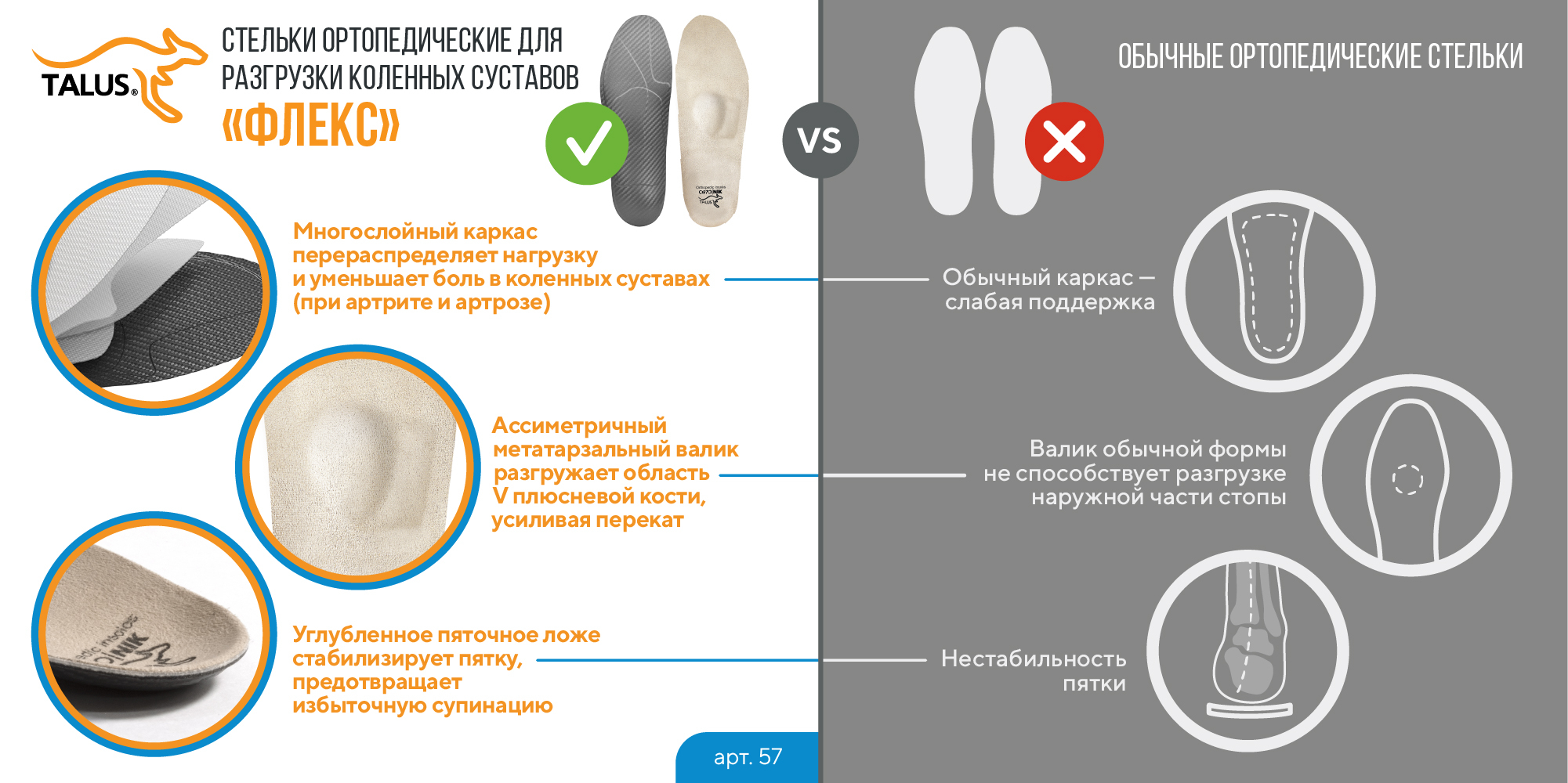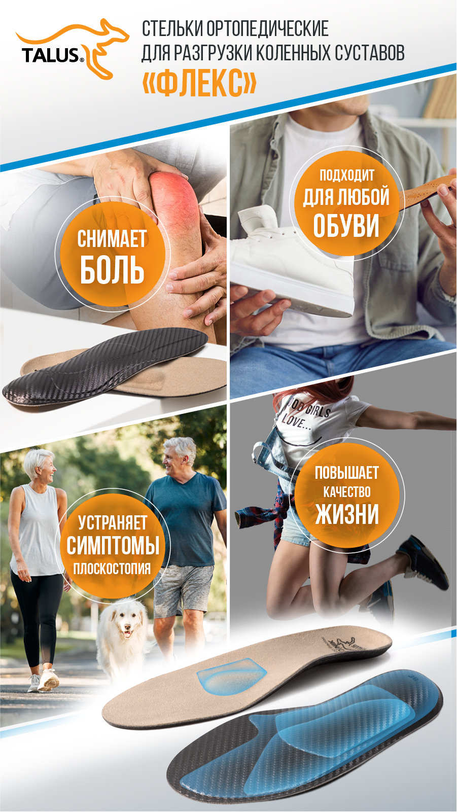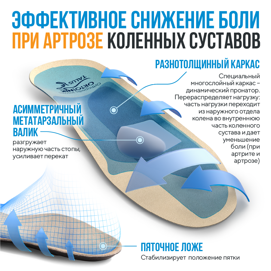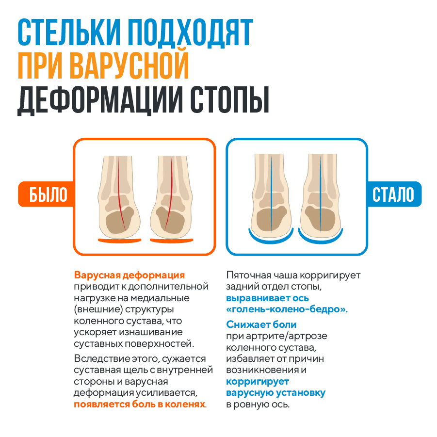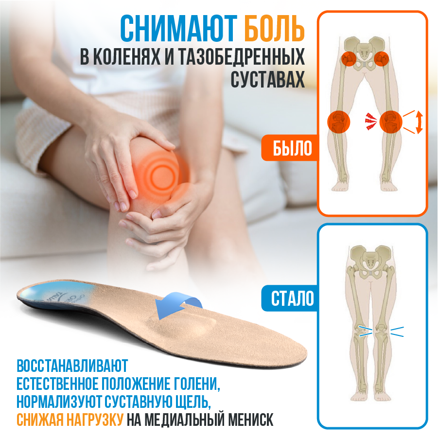 Эффективно восстанавливают естественное положение голени, уменьшают боли и прогрессирование деформаций в суставах ног.